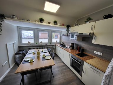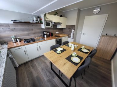 Küche: Die vollständig ausgestattete Küche enthält alles, was Sie zum Kochen benötigen, einschließlich Herd, Kühlschrank, Mikrowelle, Kaffeemaschine und sämtlichem Kochgeschirr. Die moderne Ausstattung lässt keine Wünsche offen und lädt zum gemeinsamen Kochen ein.